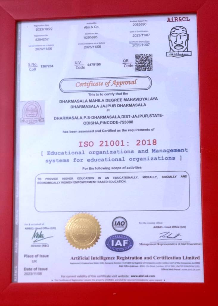 Dharmasala Mahila Mahavidyalaya was established in since 1986 at Dharmasala, Jajpur, Odisha, But it was started with special permission and in 1999 it was affiliated with university for Bachelor of Arts.